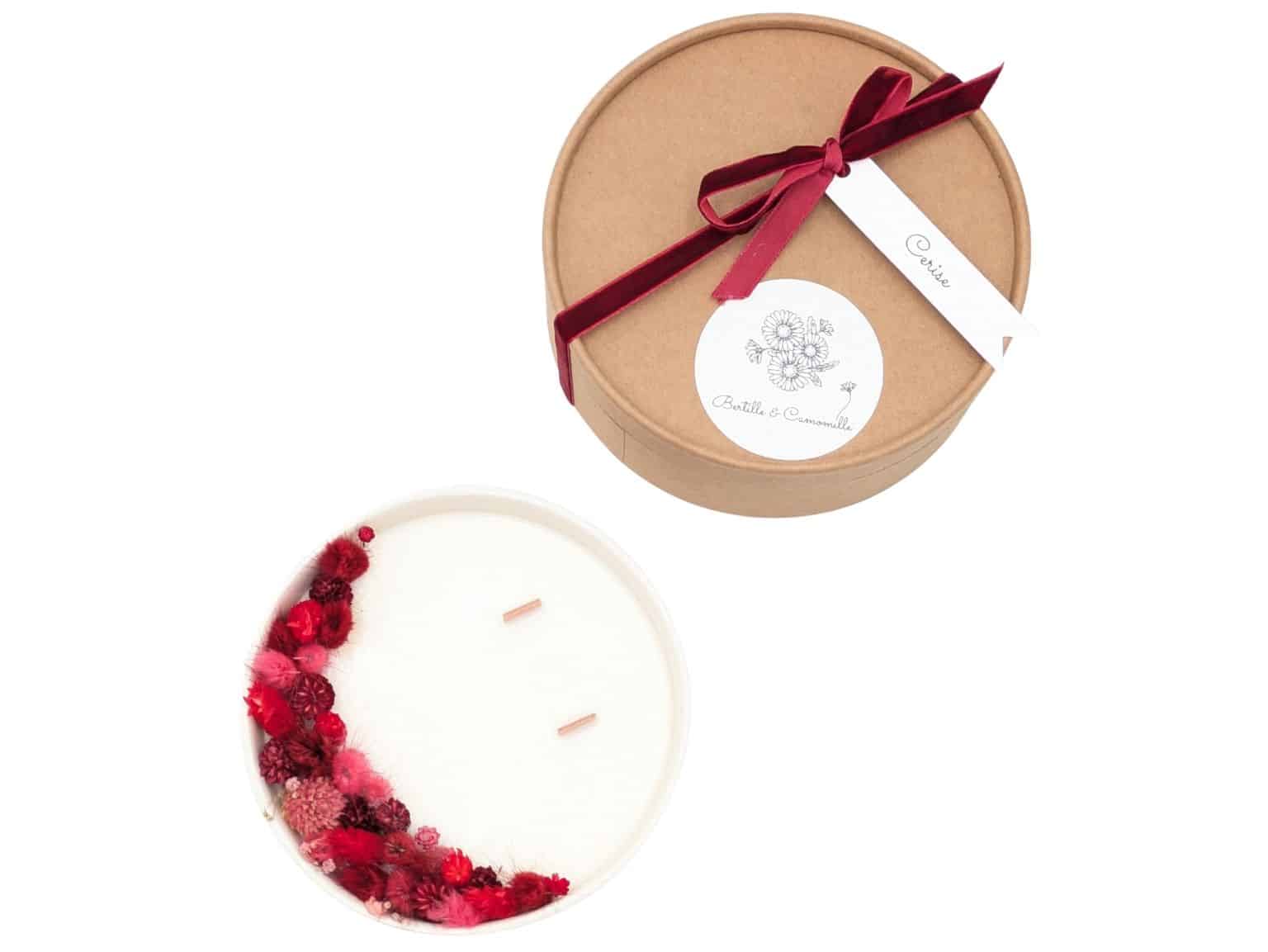 La Bougie Fleurs Séchées Rouge Aubépine – Parfumée Cerise est légèrement parfumée senteur Cerise.